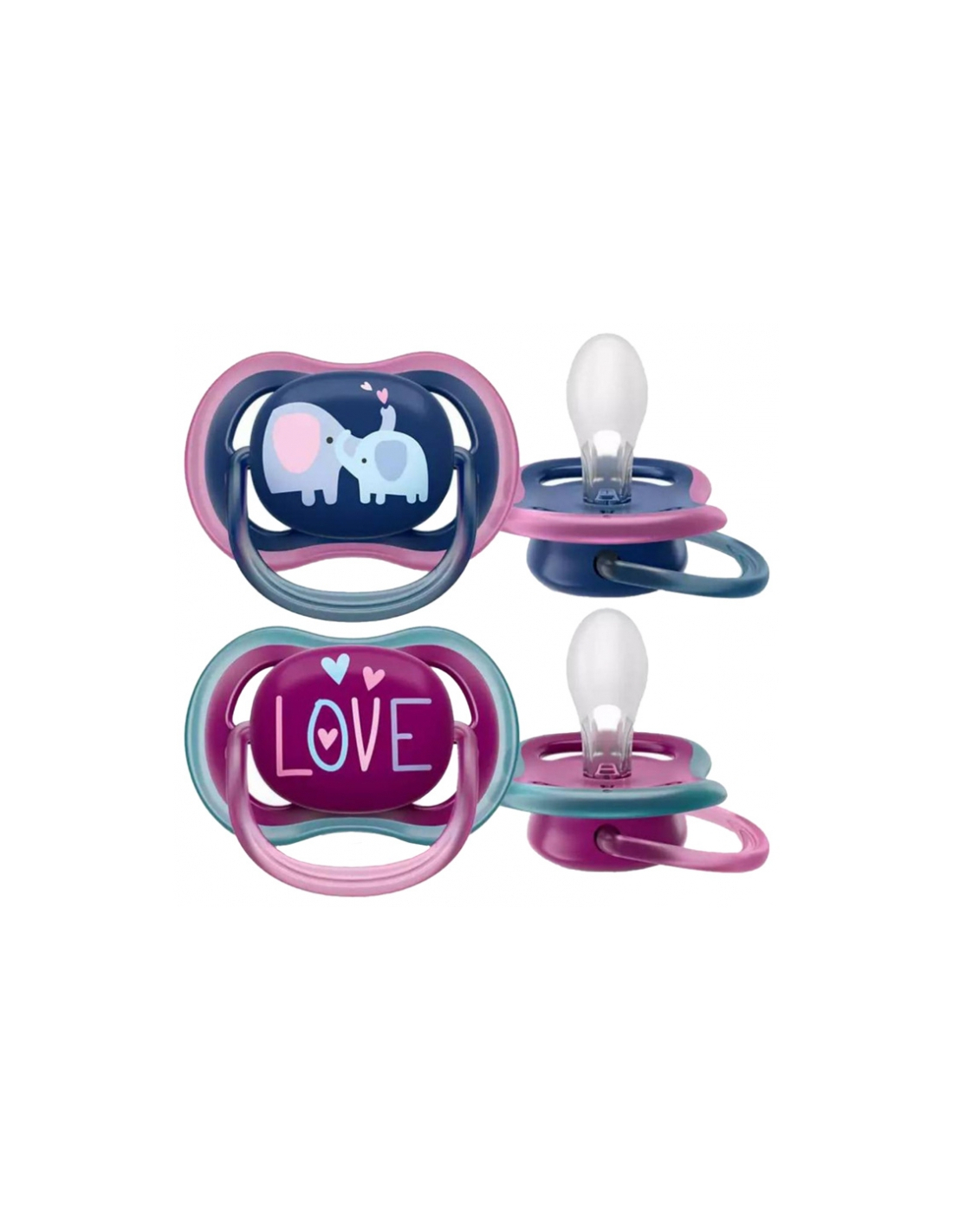 Avent Ultra Air Sucettes Orthodontiques 18 Mois et + Modèle : Éléphants/Love - 2 unités