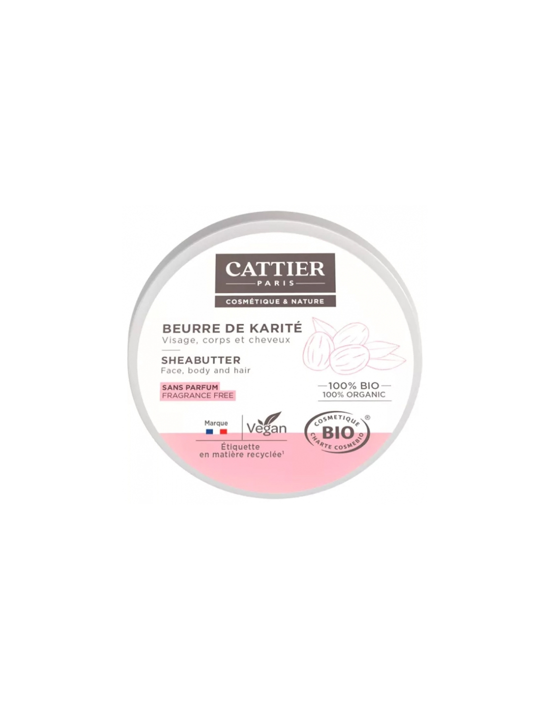 Cattier Beurre de Karité 100% Bio 20 g est un beurre corporel qui nourrit intensément l'épiderme et favorise le renouvellement cellulaire. Naturellement riche en vitamines A, D, E, F, il assouplit, adoucit et protège la peau et les lèvres. Il redonne éclat et vitalité aux cheveux et apaise le feu du rasoir. Sans parfum.