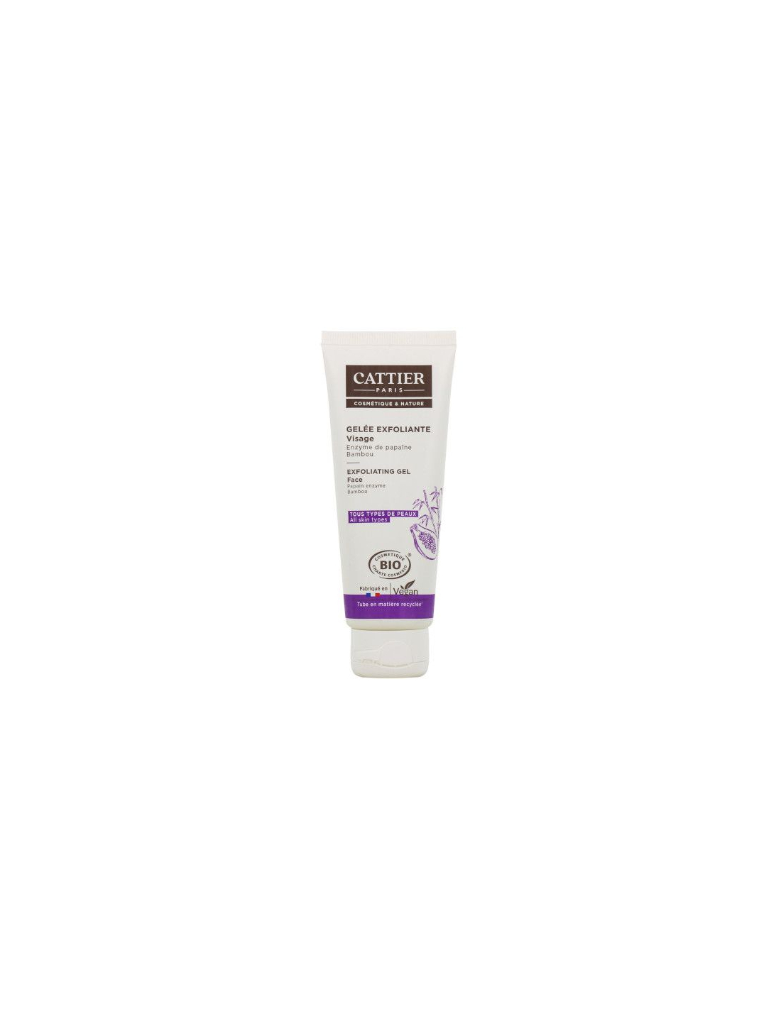 Cette gelée exfoliante élimine délicatement les cellules mortes et impuretés.