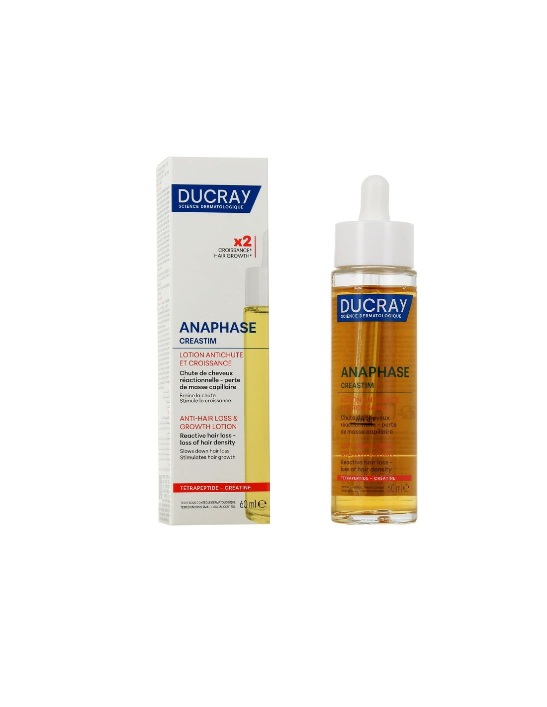 Une période de stress, un régime amincissant ou encore le post-partum sont des situations qui peuvent entraîner une perte de cheveux. On parle, dans ce cas, de chute de cheveux réactionnelle. La lotion antichute Ducray Anaphase Creastim a été formulée spécialement pour répondre à cette problématique. Elle vise à accélérer et optimiser la pousse des cheveux, les densifier et les fortifier. Pour cela, la lotion Anaphase Creastim contient de la créatine associée à un tétrapeptide. Ensemble, ces 2 actifs forment une synergie qui contribue à stimuler la phase de croissance des cheveux. On retrouve également un complexe de vitamines B5, B6 et B8 qui vient renforcer la structure de la fibre capillaire et participe à la formation d'une fibre de qualité.