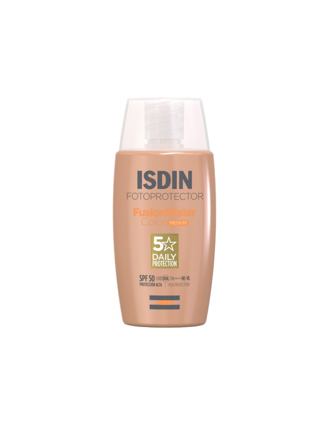 Isdin Fotoprotector Fusion Water Color SPF50 50 ml est écran solaire teinté pour le visage à phase aqueuse, qui offre une couvrance naturelle longue durée pour un effet bonne mine. Cette haute protection solaire (SPF50) hydrate intensément et garantit une protection optimale contre les rayons UV pour profiter du soleil lors des activités plein air. Sa texture ultra-légère est immédiatement absorbée et ne laisse pas de résidu, constituant une base de maquillage idéale. Pour un usage quotidien. Convient à tous les types de peau (même atopiques et sensibles)