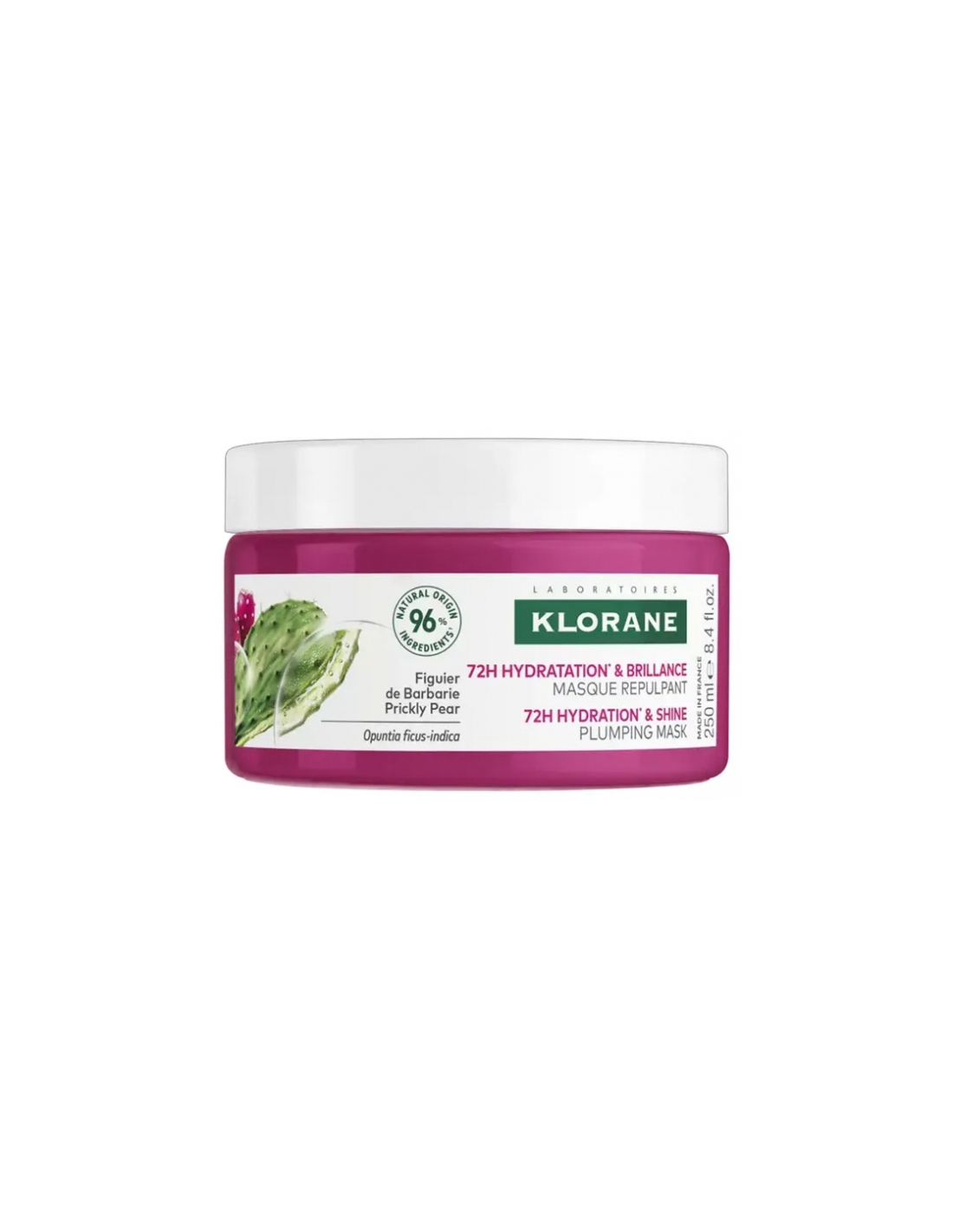 Klorane Hydratation & Brillance - Masque Repulpant au Figuier de Barbarie 250 ml est un soin capillaire spécialement conçu pour revitaliser les cheveux ternes et déshydratés. Enrichi en Figuier de Barbarie aux propriétés hydratantes, ce masque utilise des molécules hydrofixantes pour retenir l'eau au cœur de la fibre capillaire, assurant une hydratation continue jusqu'à 72 heures.