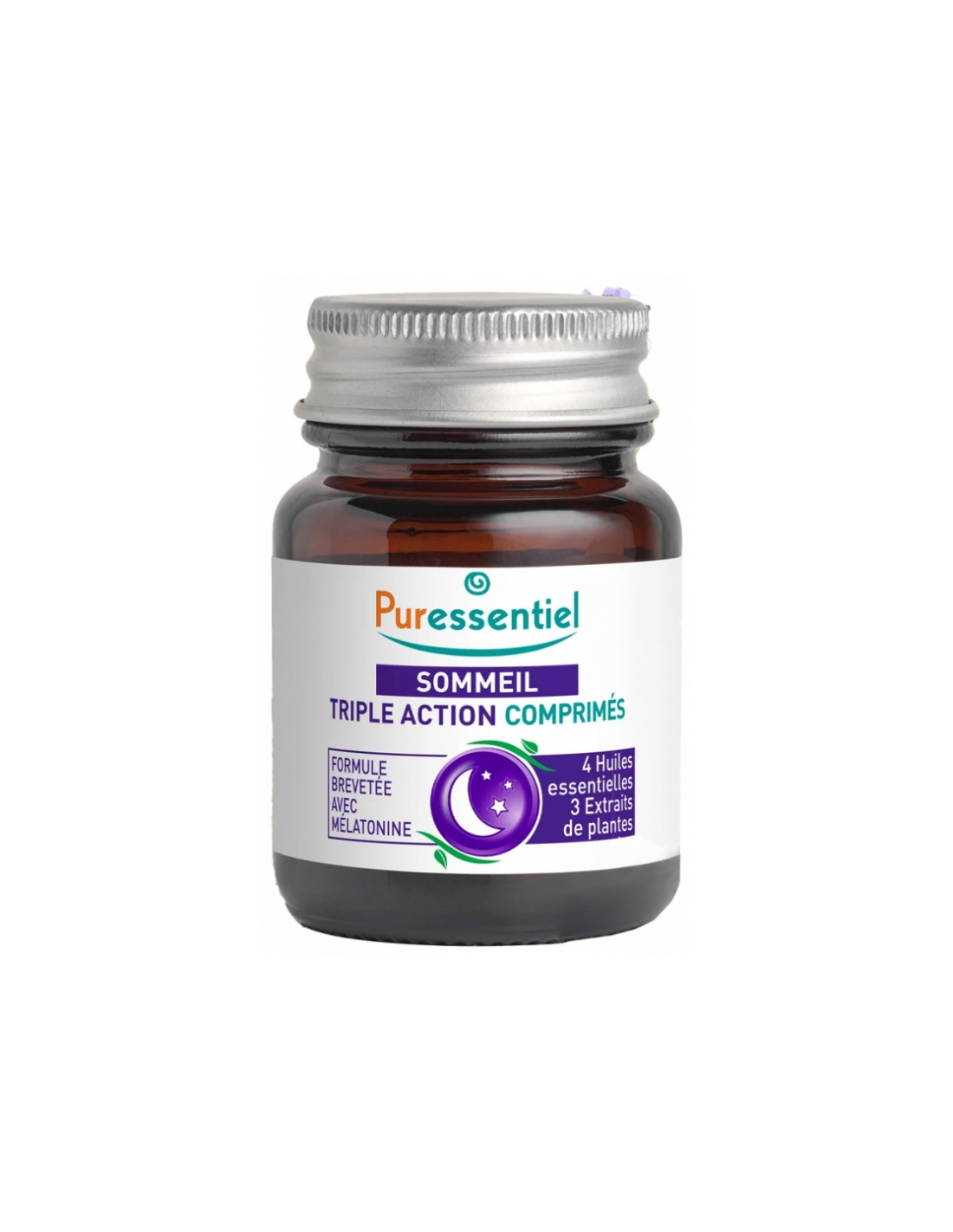 Puressentiel Sommeil Comprimés Triple Action 15 Comprimés est un complément alimentaire qui contribue à la relaxation et à la détente grâce à la passiflore et la camomille, à un endormissement plus rapide grâce à la mélatonine, et à un sommeil réparateur grâce au coquelicot.