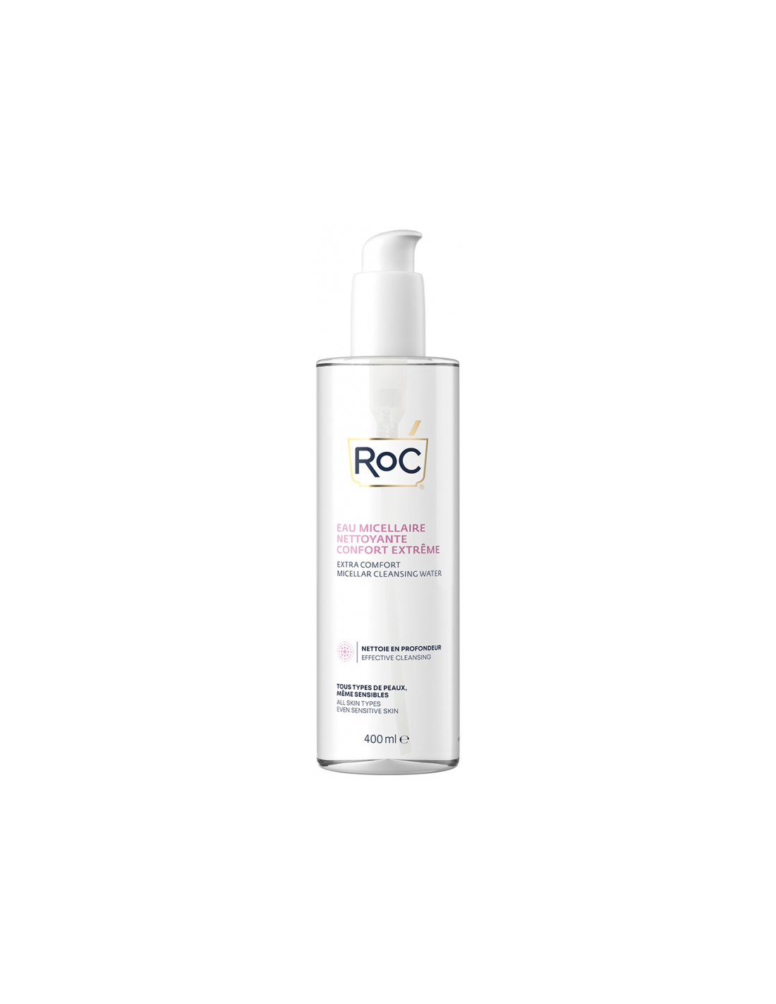 RoC Eau Micellaire Nettoyante Confort Extrême 400 ml est une eau qui offre un nettoyage doux et efficace avec une tolérance optimale.