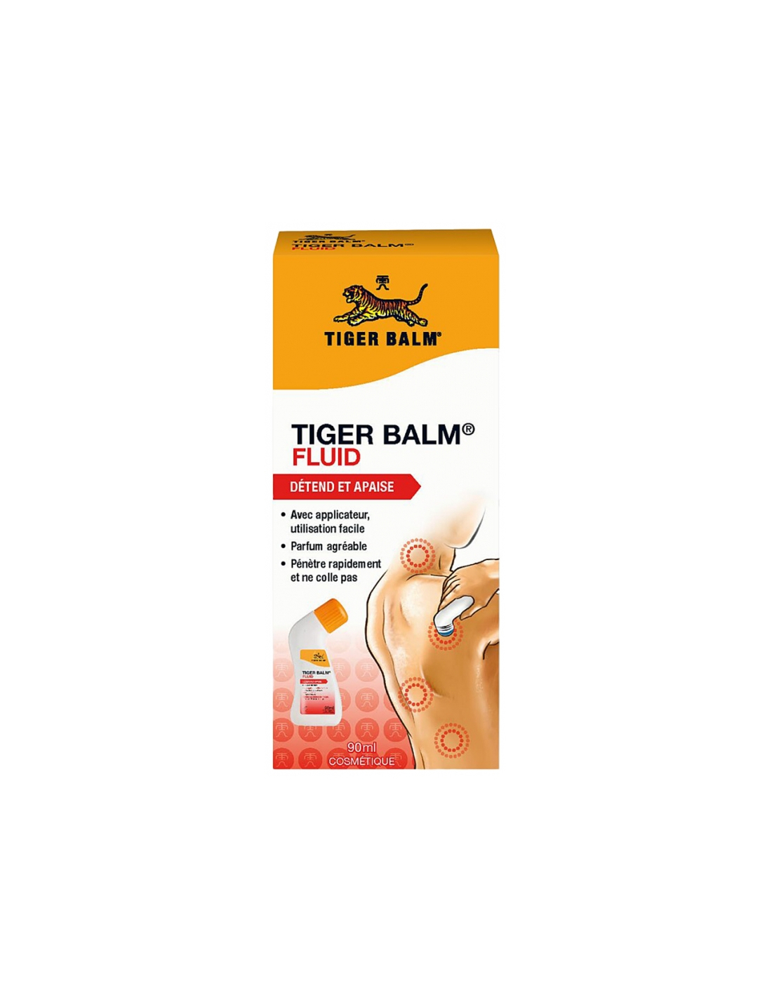Tiger Balm Fluide Baume du Tigre 90 ml est un fluide aidant à dénouer les tensions et le stress par le massage. Grâce à son applicateur innovant et la forme ergonomique de son flacon, il est idéal pour les grandes comme les petites parties du corps et permet d'atteindre facilement toutes les zones (y compris les zones difficiles : dos, nuque, ischio-jambiers...). Son parfum agréable vous aidera à vous détendre. Son application facile permet une utilisation où que vous soyez : au bureau, en voyage, avant et après une activité physique. La présence de menthol, réputé pour ses propriétés apaisantes sur la peau, fait de ce fluide le partenaire idéal pour se détendre et se relaxer à tout moment de la journée.