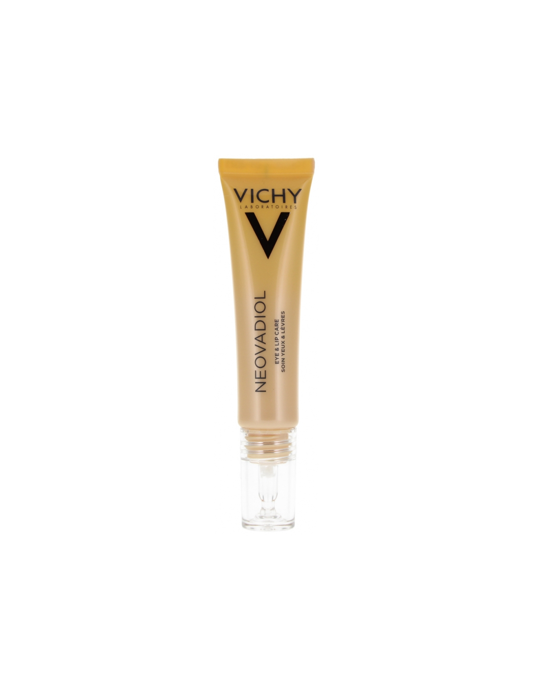 Vichy Neovadiol Soin Multi-Correcteur Yeux & Lèvres 15 ml est un soin formulé pour raffermir le contour des yeux et des lèvres, réduire l'apparence des poches et nourrir intensément. Formulé à base de Proxylane, d'extrait de Cassia, d'Acide Hyaluronique et de Niacinamide, il aide à compenser les impacts visibles de la ménopause en améliorant l'aspect de la peau. La peau est plus ferme, hydratée et son élasticité est améliorée. Enrichi en Oméga 3-6-9 nourrissants, en Eau Volcanique de Vichy et en Caféine, la peau du contour des yeux et des lèvres est plus nourrie, apaisée et les poches sont réduites. Immédiatement, le contour des yeux parait plus lumineux, la peau du contour des yeux et des lèvres semble lissée et nourrie. Après 4 heures, elle semble raffermie, et après une semaine, les rides du contour des lèvres paraissent réduites.