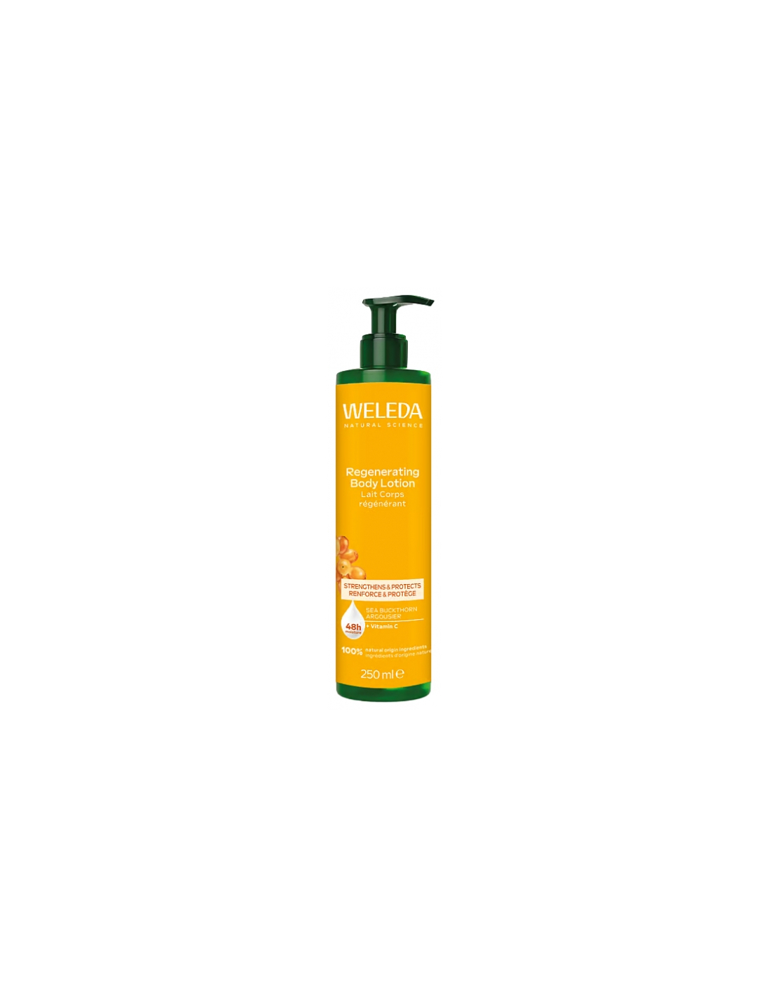 Weleda Lait Corps Régénérant 250 ml offre une hydratation longue durée de 48h aux peaux sèches. Sa formule enrichie à l'huile d'argousier Bio, à l'huile d'argan, au beurre de cacao et à la vitamine C apaise la peau, diminue la sensation de tiraillement, procurant un confort durable et revitalisant pour les sens. Tolérance cutanée testée sous contrôle dermatologique. Parfum issu à 100% des huiles essentielles naturelles et/ou extraits de plantes.